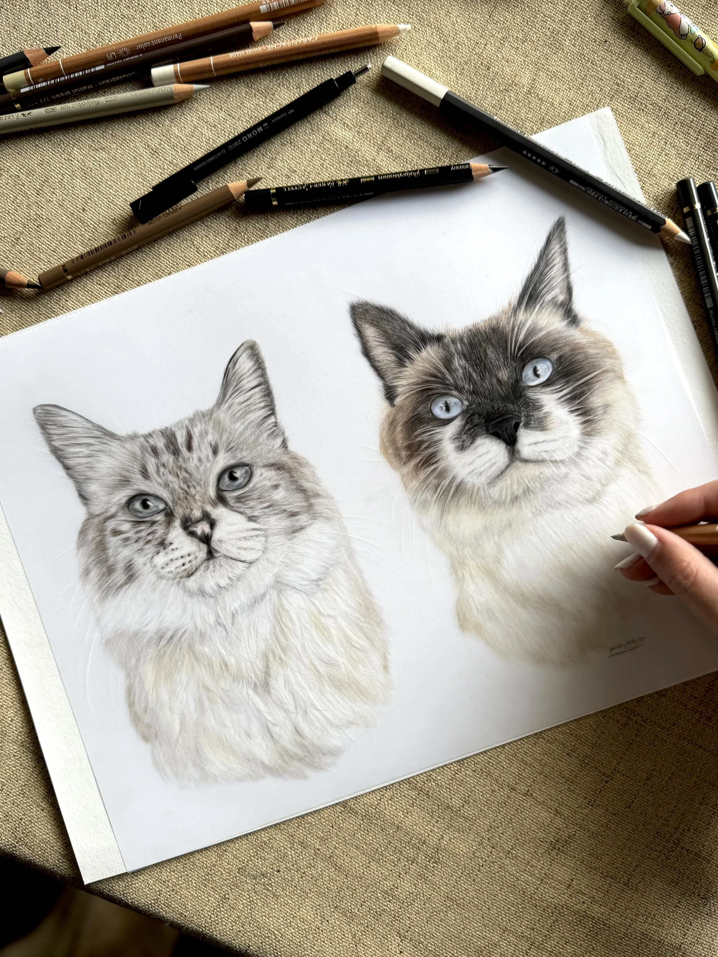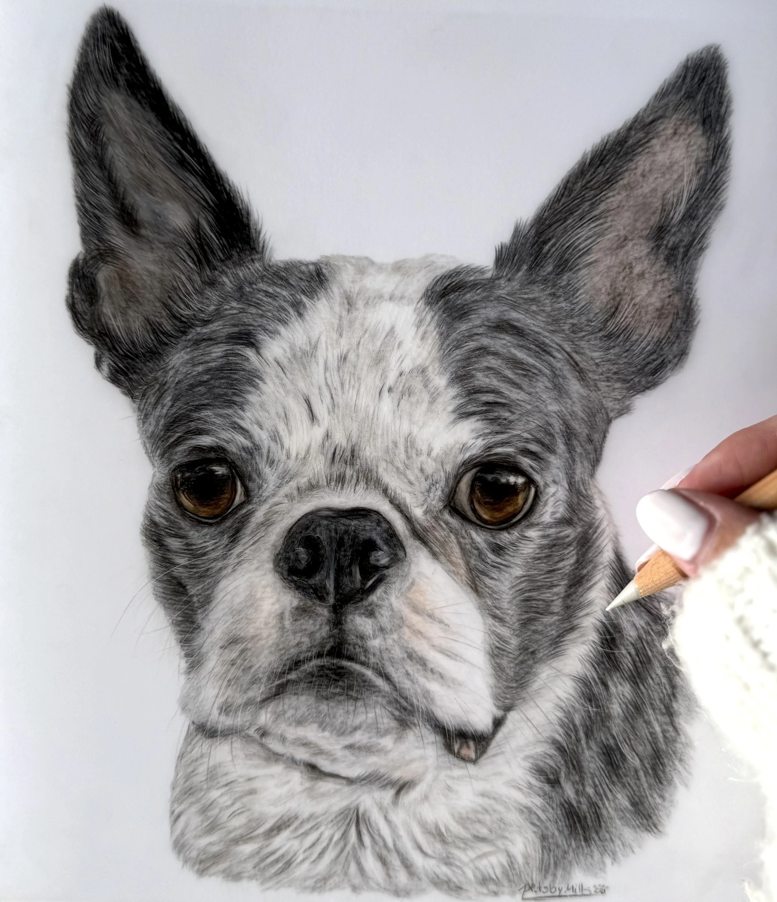 When ordering your pet portrait you will get, a high quality portrait made with the finest materials that help me to achieve a highly detailed portrait of your beloved companion to truly capture their personality as best I can.